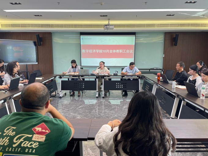 2025 年10月15日,数字经济学院在崇实楼箴言厅顺利召开 10月教职工会议。学校校长助理、数字经济学院执行院长周昱宇,学院党总支书记、副院长唐李英,学院党总支副书记何玉雯出席会议,会议由唐李英主持,全体教职工参会。