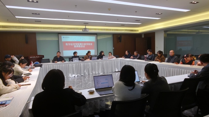 为深入推进教育教学改革,夯实人才培养过程质量管理,积极呼应学校“第三次创业”的战略部署与内涵要求,11月5日下午,数字经济学院在崇实楼2605会议室成功召开了本学期期中教师座谈会。学校教务处副处长杜春莅临指导,学院副院长唐李英、各专业教师代表齐聚一堂,围绕课堂管理、教学方法和学院教学管理优化等核心议题,展开了深入而富有建设性的交流与探讨。